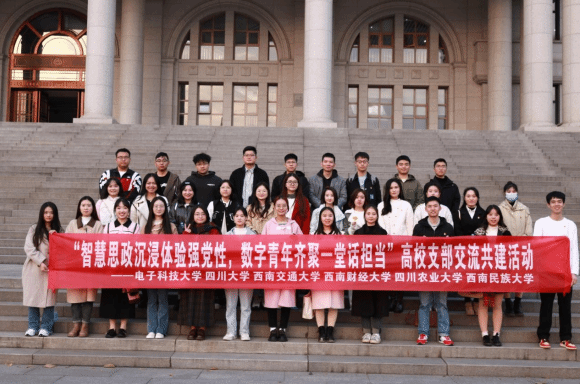 与此同时,也有部分党员同志和积极分子代表,前往电子科技大学参加“智慧思政沉浸体验强党性,数字青年齐聚一堂话担当”高校支部交流共建活动,与电子科技大学、四川大学、西南财经大学、四川农业大学和西南民族大学等兄弟院校交流高校学生基层党支部建设的成果和经验。