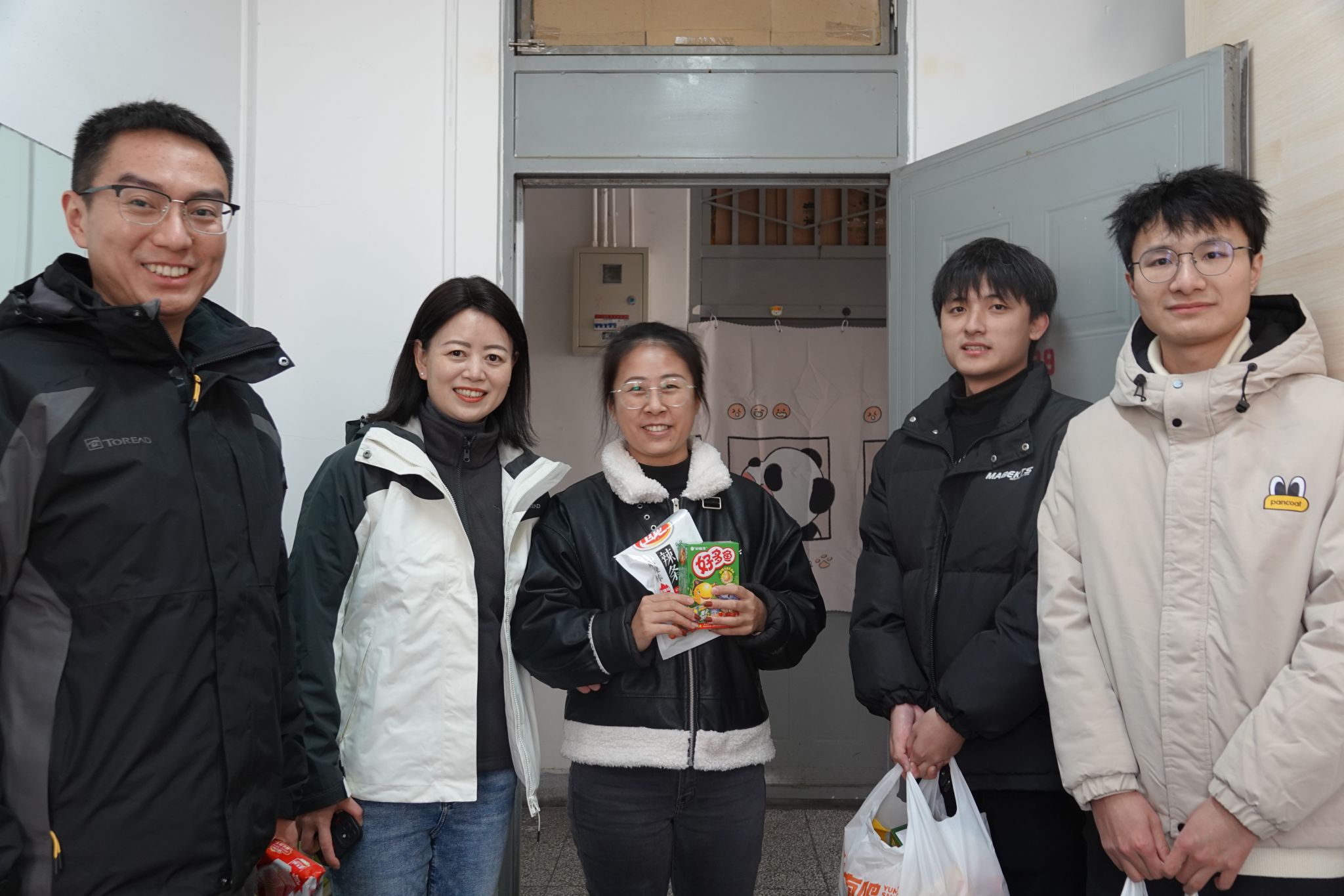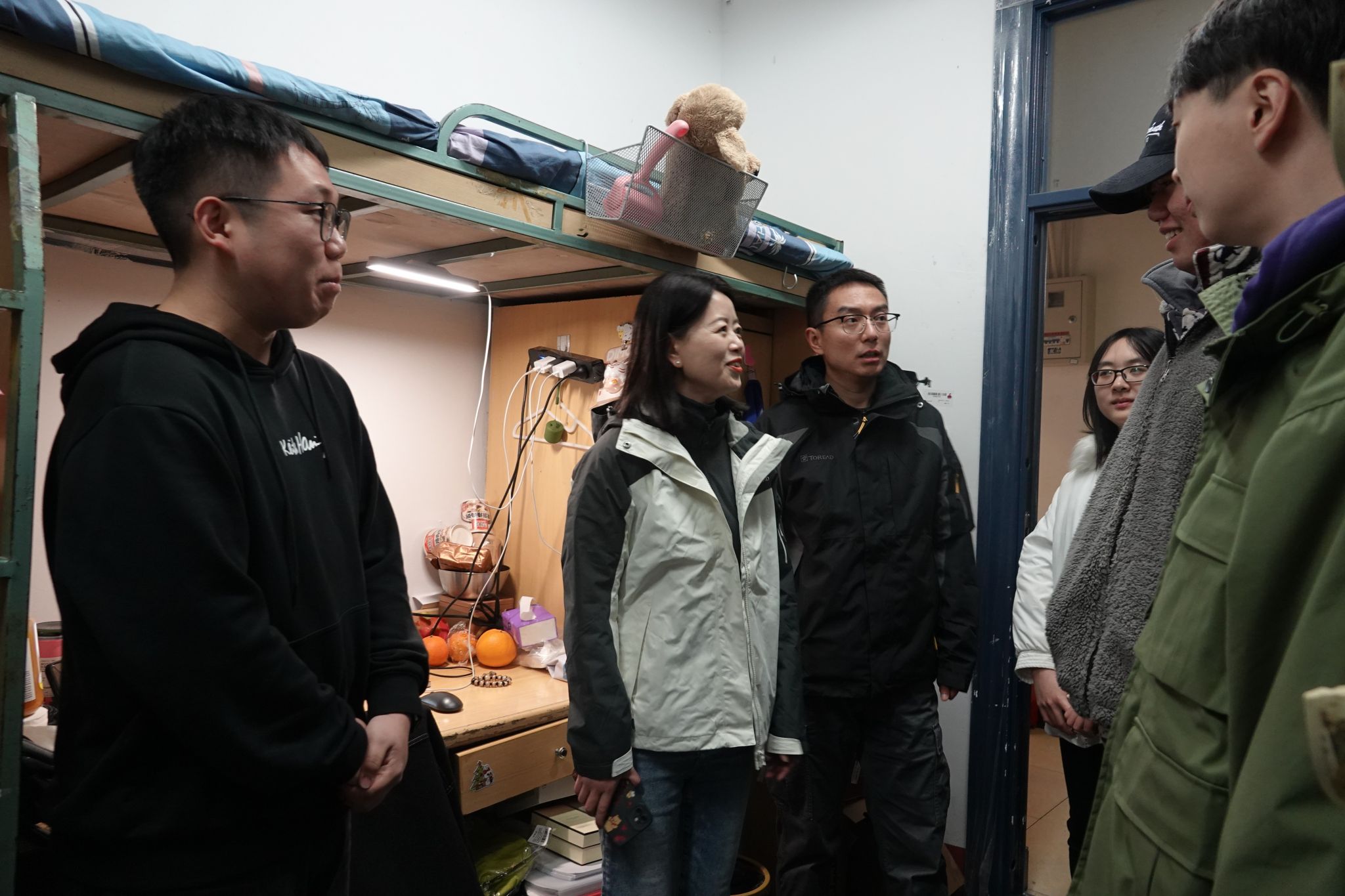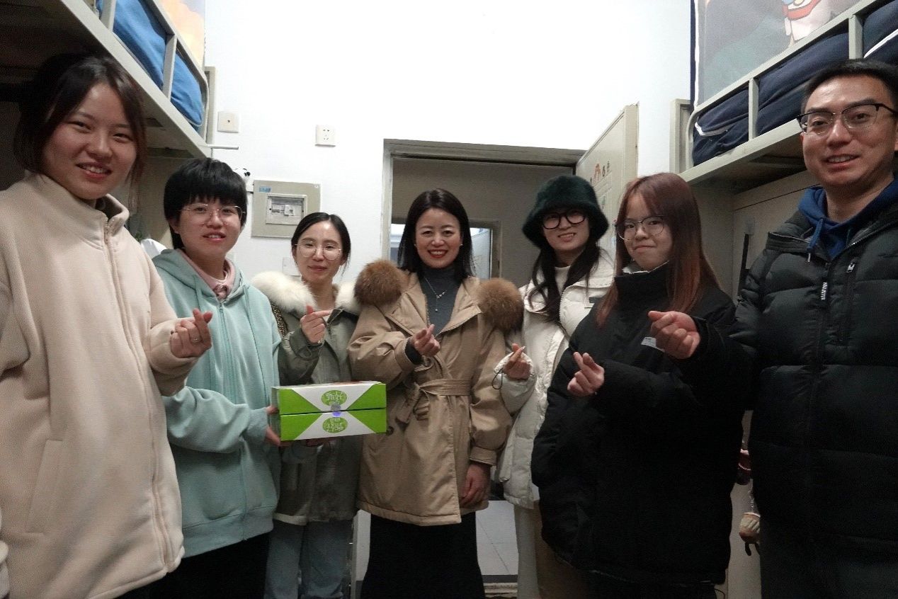 党委副书记邓秀芸、研究生辅导员赵晨、本科生辅导员杜晓林和高楠共同走访学生宿舍,看望慰问学生。