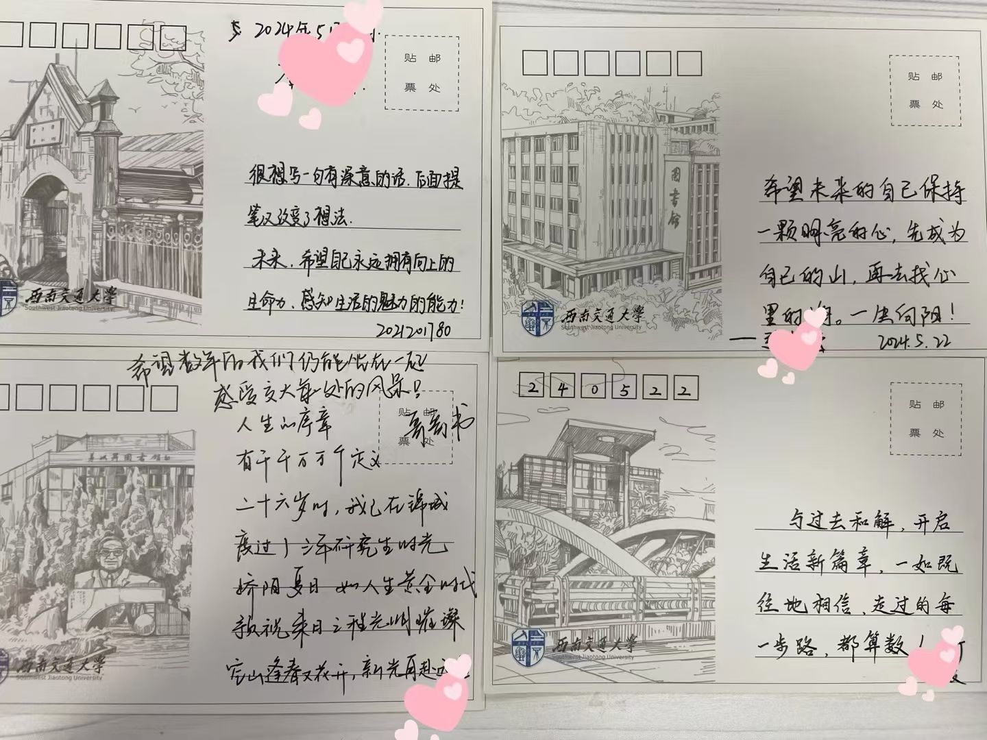 “不忘初心,砥砺前行”环节,毕业生党员们纷纷在交大明信片上书写自己对未来的期待。“希望数年后的我们仍能坐在一起,感受交大每处的风景!”“希望未来的自己保持一颗明亮的心,先成为自己的山,再去找心里的海。”“不忘来时路,方知向何行,希望自己成为一名优秀的思政老师,讲好每一堂课”……文字中既有对交大马院的依依不舍,也有对未来工作岗位的殷殷期待。