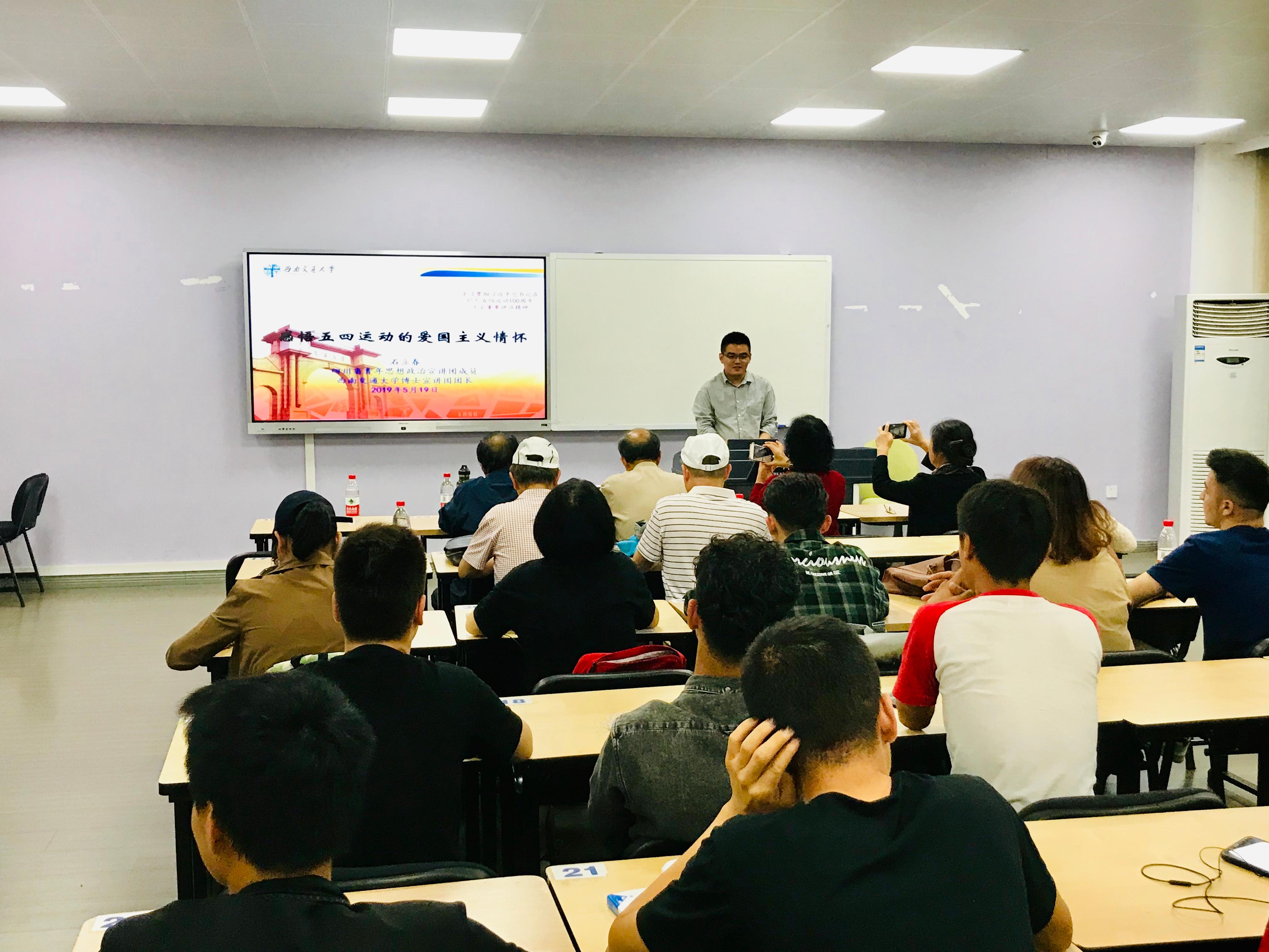 5月19日19:30-20:30,四川省青年思想政治宣讲团成员、校博士宣讲团团长,我院2015级博士研究生石立春,为参加四川大学半月谈“同心圆”的少数民族同学,开展以“感悟五四运动的爱国主义情怀”为题的政治宣讲。