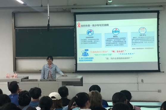 为普及艾滋病防治知识,增强大学生自我保护意识,我院于2019年10月10日,在X2213举行91吃瓜