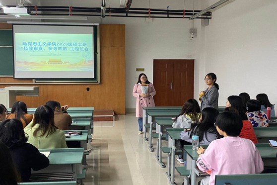2020级硕士班于X4156召开“扬我青春,奋勇向前”主题班会,此次班会由班长魏敏主持。