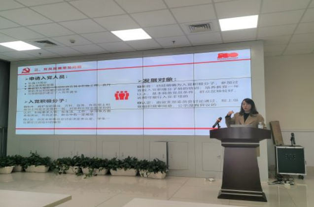 熊老师从“党员发展工作要求”“党员发展基本程序”“党员发展常见问题”“党员材料撰写要求”等四个方面展开叙述。她强调对于党员发展工作,要坚持把政治标准放在首位,提升党员发展质量,加强日常培养教育考察,发挥党员先锋模范带头作用。熊老师从工作细节出发,以党员发展过程为脉络,重点结合当下学生党支部的具体案例讲解党支部的工作要求及方法,同时针对工作中遇到的具体情况提出解决方案。