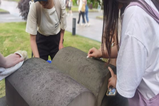 青年志愿者协会组织开展雕塑清洗活动。活动当天,劳动志愿者领取了抹布、水桶、清洁剂等工具,在15栋园区附近开展雕塑的擦拭和清洗。经过志愿者们多次细心清洗,雕塑再次焕然一新。