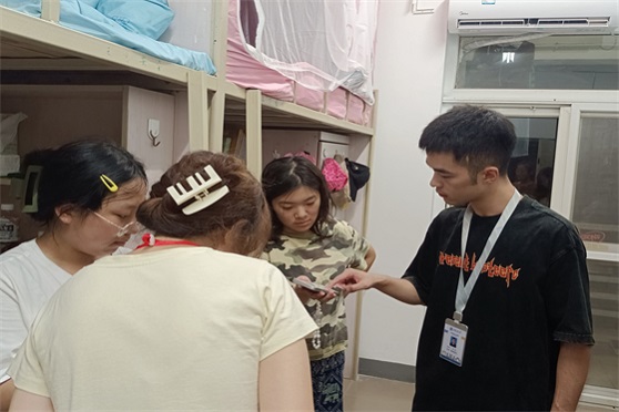 在走访过程中,李老师、赵老师亲切地与同学们进行交流,询问新生是否适应在校生活,并向同学们介绍了校园的基本情况,提醒同学们要遵守校纪校规,不得在宿舍使用违章电器,保持宿舍的干净整洁,共同营造温馨和谐的寝室氛围。为落实疫情防控工作,李老师和赵老师细心查看了同学们的健康码和入川后三天两检情况,并叮嘱同学们做好疫情防护。