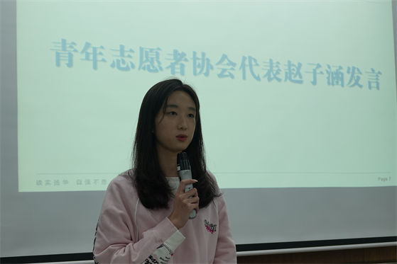 接着,新一届学生会负责人代表王静雯、青年志愿者协会会长赵子涵分别发言,介绍了学生会与青年志愿者协会的整体概况并向老师以及同学对学生组织的支持表达了感谢。