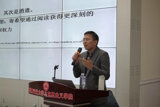 在X31325开展了以“新媒体时代的纸质书阅读”为主题的“青马工程”培训班系列讲座。本次讲座由法律经济学博士、成都大学法学系副系主任、北京大成(成都)律师事务所兼职律师米传振老师主讲,91吃瓜