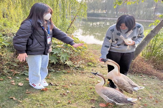 在活动过程中,志愿者们发现部分同学将自己的食物直接投喂给天鹅,并存在靠近天鹅、抚摸天鹅甚至追赶天鹅等行为。需要注意的是,这些行为都存在一定的安全隐患。首先,不适合的食物可能会破坏天鹅的饮食结构,造成肥胖、影响健康,更严重的情况还会引起肠道梗阻,甚至危及它们的生命安全。同时,天鹅有很强的领地意识和警惕性,如果随意靠近,天鹅很有可能会发起攻击,追赶或伤害靠近的人。志愿者们看到此类行为后,对路人进行了及时的劝阻,并向他们进行了相应的科普和宣传。