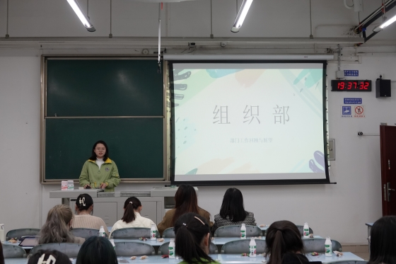 其次,学生会主席团成员介绍了本学期的工作计划,具体讲解了读书分享会与寝室风采大赛等活动的细节变动,并鼓励学生会各部门之间相互配合,共同努力,加强与主席团、指导老师的沟通交流,更加热爱学生会与学生工作。