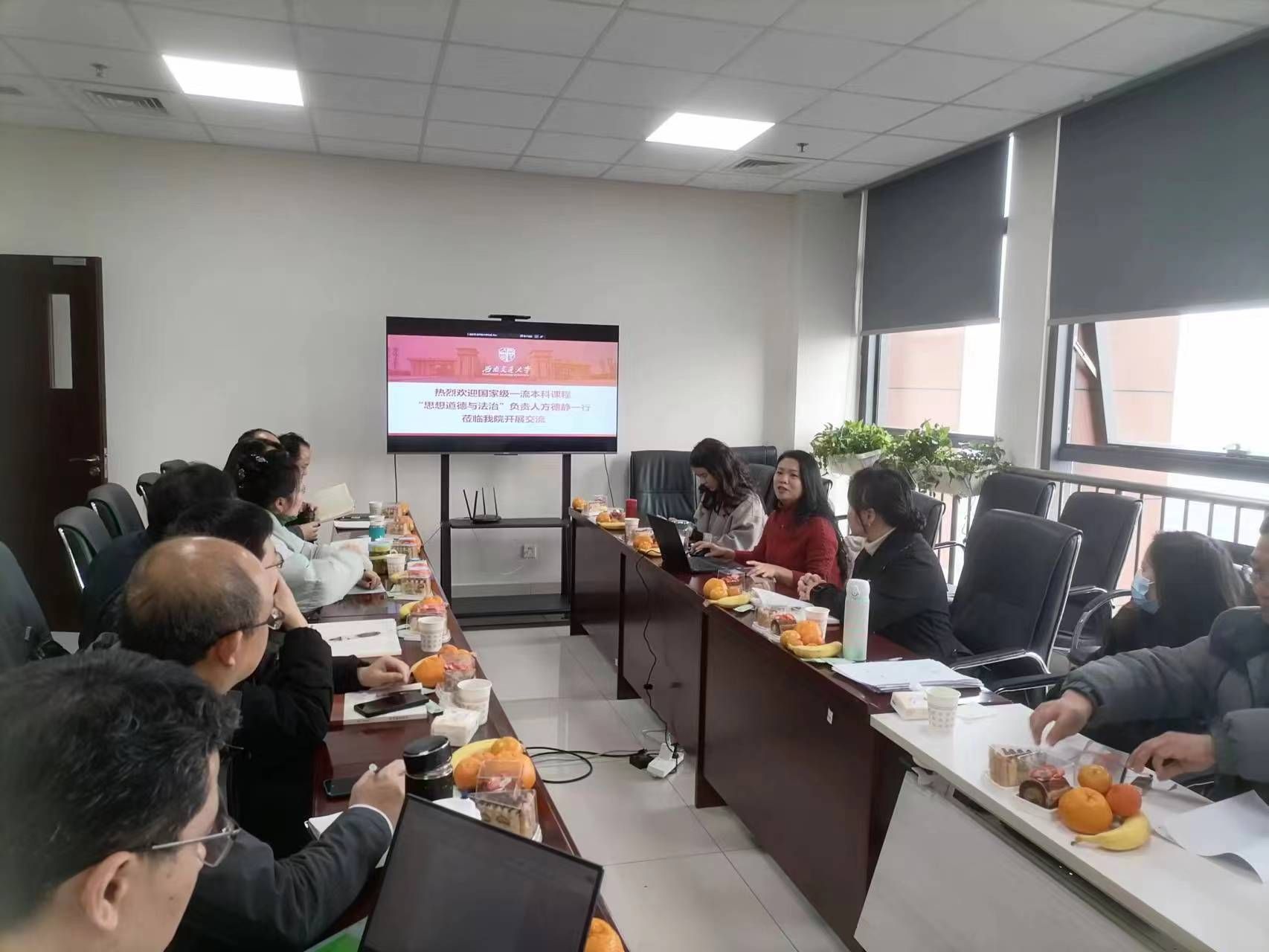 国家级一流本科课程“思想道德与法治”负责人方德静副教授及其团队与我院“思想道德与法治”教研室全体教师共同举办了跨校联动备课会。会议由我院“思想道德与法治”教研室主任王菁教授主持。