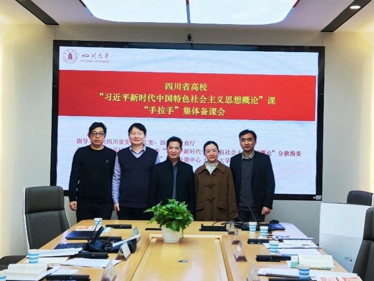 2024年1月13日下午,李学勇、刘玉标、郜清攀、欧丹、凡景强一行5人在课程负责人李学勇教授带领下,奔赴四川大学江安校区参加四川省高校“习近平新时代中国特色社会主义思想概论”课“手拉手”集体备课会。本次集体备课会由四川省高校“习近平新时代中国特色社会主义思想概论”课分教指委牵头,旨在建好讲好“习近平新时代中国特色社会主义思想概论”课,创优课程教学质量共同体,围绕本课程各章教学设计开展深入研讨交流。