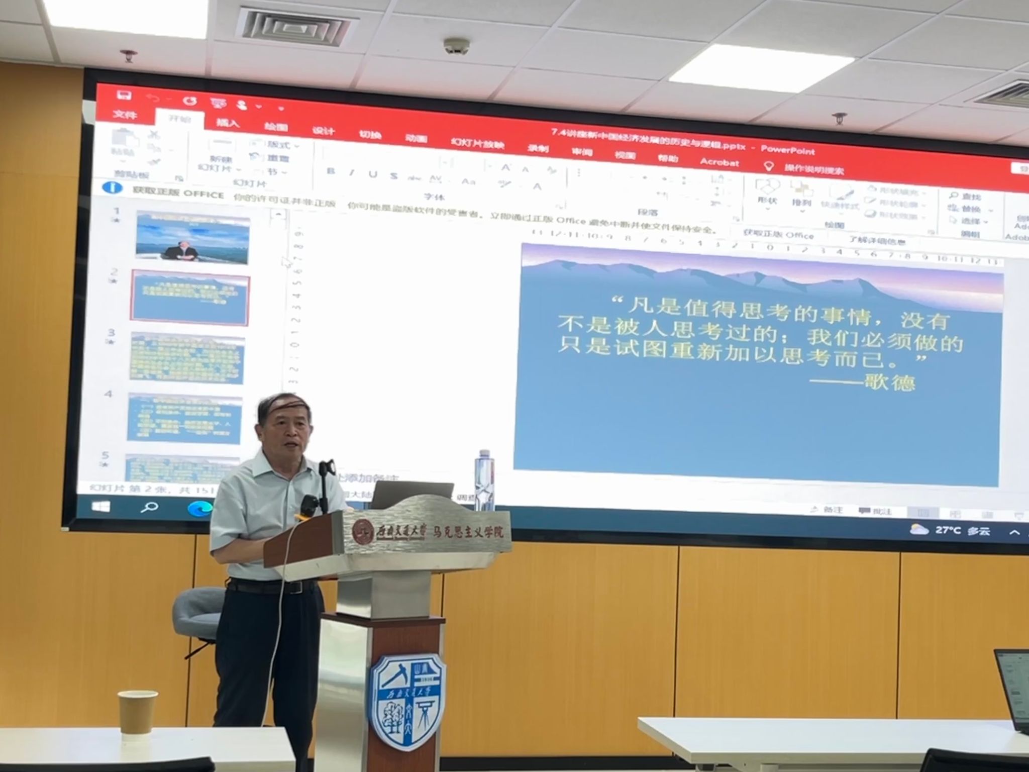 武力教授讲授以《新中国经济发展的历史与逻辑》为题,站在历史发展的视角,从国家安全与改革开放两个方面向同学们分享了新中国成立以来我国经济发展的规划与逻辑。武力教授指出,新中国成立后我国经济发展是“效”“质”相继的发力,计划经济和市场经济有其存在的合理性,应当根据历史规律、社会发展规律力理性正视,善于总结历史经验,推进建设改革。讲授分享过程中,武教授特别强调,国家安全是新中国成立后国家发展的关键一环,只有安全、稳定、和平的国家环境才能为政治、经济、文化、社会的发展提供坚实的基础。武力教授还另辟蹊径,以国家军队的建设发展历程作为锚点,向同学们具象化呈现了我国在国防安全建设方面的重视程度和卓越成就。