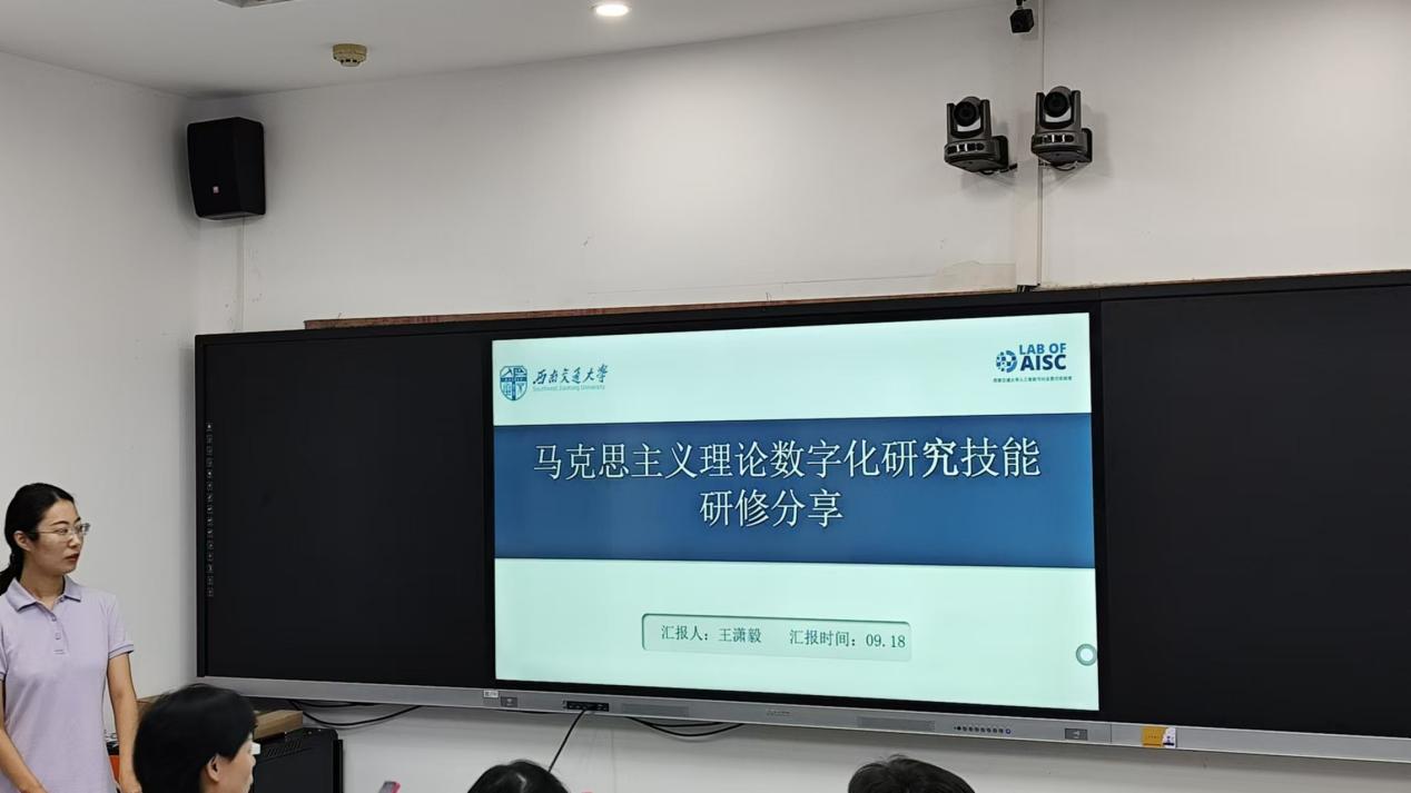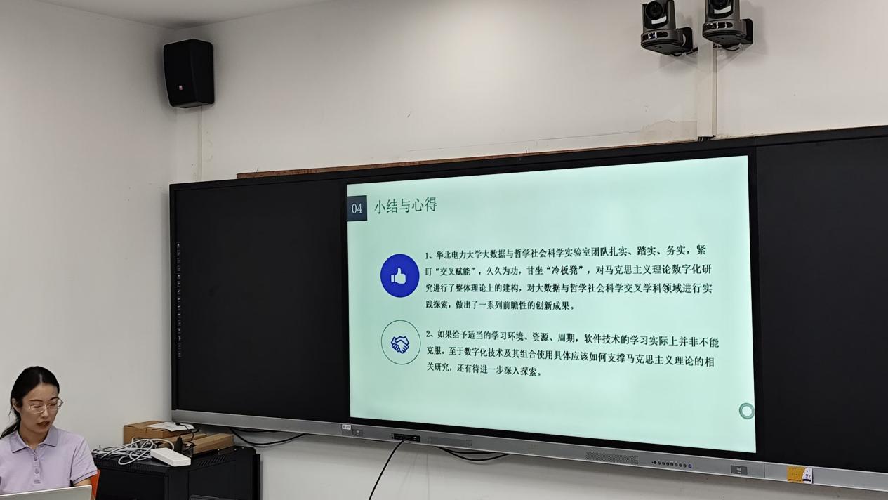 博士生王潇毅主讲,分享自己在参加“第二届马克思主义理论数字化研究技能研修班”后的学习成果。王潇毅博士在此次工作坊中介绍了华北电力大学大数据与哲学社会科学实验室的相关实验室建设做法,并分享了暑期技能研修班的学习成果。