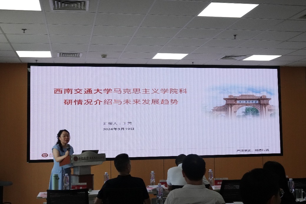 王菁副院长结合学习贯彻党的二十届三中全会精神深化教学研究,作了国社科思政课专项申报动员。勉励全院教师共同努力,把教学和科研深度融合,把握科研发展规律,有计划地开展科研,在新时代中展现新气象,体现新作为。
