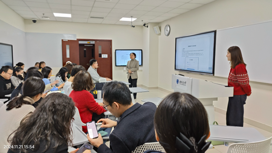 首先,智慧树平台培训专家向参会教师介绍了数字化工具在思政课教学中的应用,特别强调了数字化签到功能在提高课堂出勤准确性和防止作弊方面的重要性。通过二维码和GPS技术,该功能有效提升了课堂管理的效率和公正性。此外,智慧树平台提供的“讨论”、“问答”、“点答”和“弹幕互动”等功能,极大地丰富了课堂活动,提高了学生的参与度和课堂互动的质量。随后,王菁副院长结合个人教学经验,分享了《如何用数字化工具让课堂活起来》的混合式课程实施经验。她结合“思想道德与法治”课程详细介绍了数字化工具在问卷、投票、讨论和现场测验等方面的应用,以及混合式课程的实施逻辑和效果。