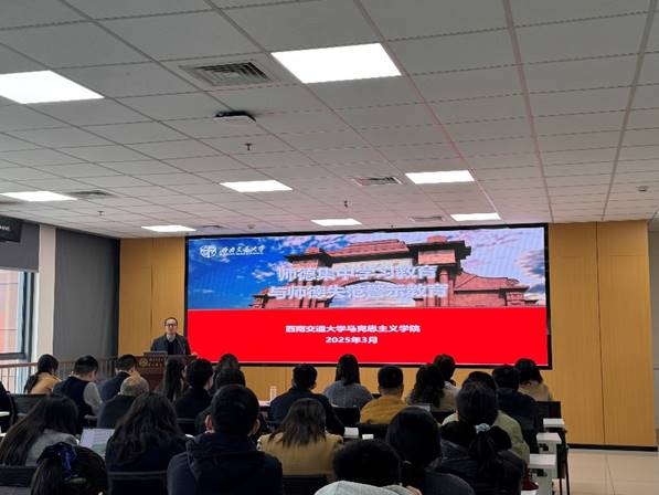 廖军指出,教育部加强全国高校思政课教师师德师风监测,为高校前置审查提供支持,学校也将师德师风建设纳入党建重点工作,对问题早发现早纠正。若思政课教师出现严重师德问题,将立即停止教学工作,依规依纪依法、从严从重给予处理。此外,大会还对《新时代高校教师职业行为十项准则》《研究生导师指导行为守则》进行深入学习,并列举多起师德失范警示案例。这些案例涉及政治立场、教学态度、师生关系、学术诚信等多个方面,为我院全体教职工敲响师德警钟。