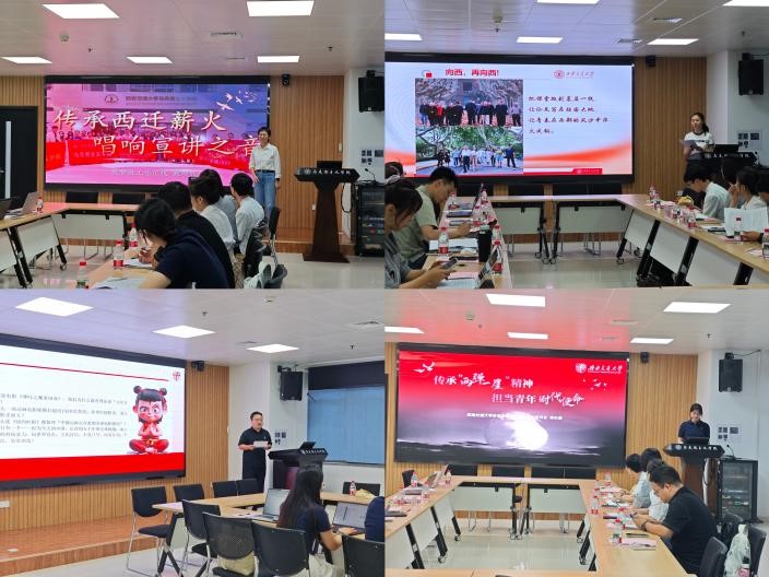 西安交大马院筑梦宣讲团社长鲍雨欣以“传承西迁薪火,奏响宣讲之音”为主题,介绍了宣讲团的基本情况及运行模式,强调了宣讲团在传播红色文化、传承西迁精神中的重要作用。随后,筑梦宣讲团成员张笑涵与“理响红途”理论宣讲团成员刘瑞、蒋乐潇进行了精彩的示范宣讲。