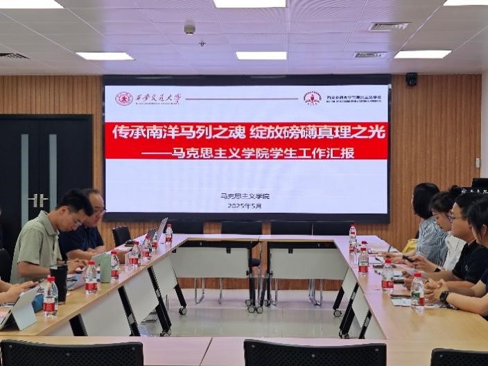 在会议的第一环节,邱辰以《传承南洋马列之魂 绽放磅礴真理之光》为题,简要介绍了西安交通大学马院的学生工作的基本情况和工作经验,他在结束时强调,做好学生工作要始终坚持“三个立足”,即立足学工看学工、立足91吃瓜