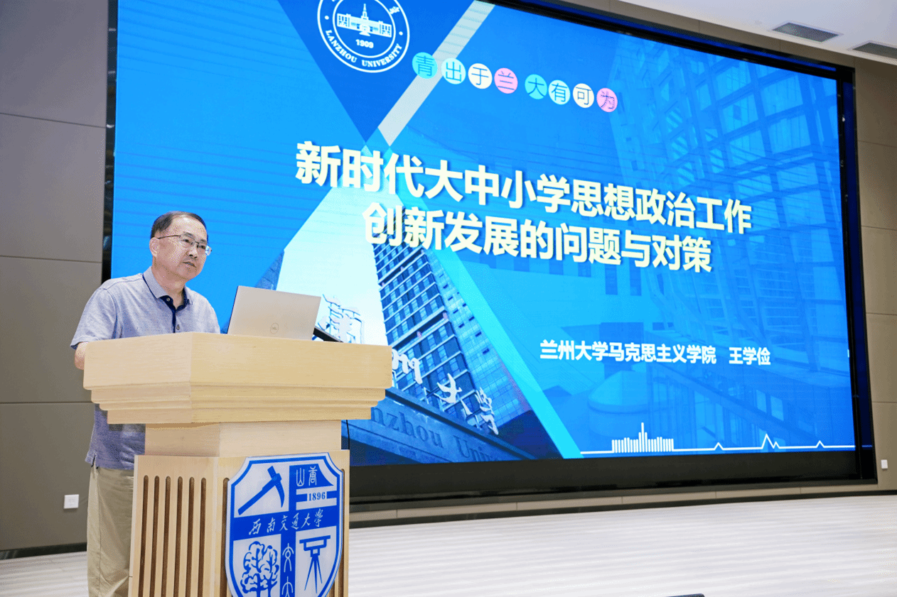 二级教授王习胜教授作报告。王学俭教授在报告中围绕“大中小学思想政治工作创新发展的问题与对策”,从新时代大中小学思想政治工作的地位与使命、复杂性特征以及对策三个方面深入浅出地阐明了思想政治工作在落实立德树人根本任务中的重要地位、存在的问题和提升路径。王习胜教授以“新时代大中小学思政课一体化建设的具身取向”为题,从大中小学思政课一体化的具身缘由、具身原理、具身路径建构和具身取向审思四个方面,阐释了实现大中小学思政课一体化的前提条件、学理依据、提升策略和发展思考。