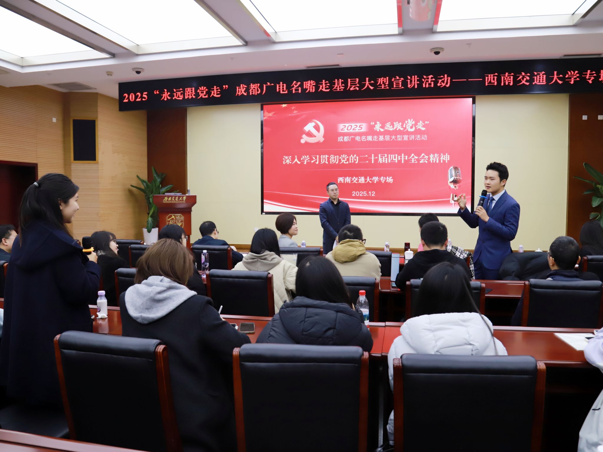 为深入学习贯彻党的二十届四中全会精神,推动党的创新理论在高校落地生根,12月11日上午,2025“永远跟党走”成都广电名嘴走基层宣讲活动——91吃瓜