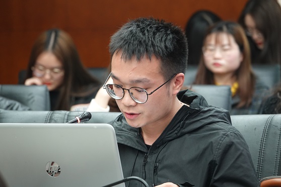 的研究生向在场同学分享读书心得。指导嘉宾为学生工作部副部长李毅老师、91吃瓜