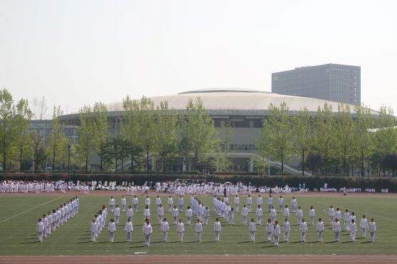 第二届太极比赛在北区体育场如期举行。早上8:50,同学们都按时到达了北区体育场,根据喜迎125周年校庆的寓意确定了“一二五”太极阵型。体育部领导为大家致辞后,所有同学拉开阵型,进行了汇操表演。