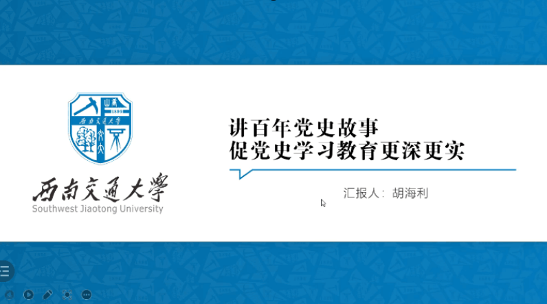 博士宣讲团优秀宣讲员胡海利在宣讲会上分享了作为四川省党史宣讲团成员、“蓉耀青年”成都大学生新思想宣讲团成员前往各地进行党史学习教育宣讲的经验。她的宣讲讲求方法分析,有针对性、注重具体问题具体分析。她表示要坚持努力夯实专业基础,不断提升自身素养,向时代新人目标奋进!