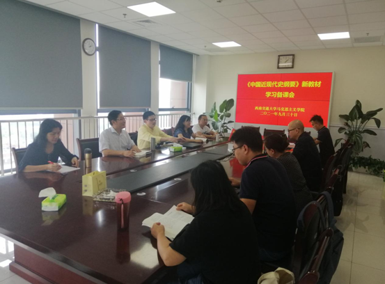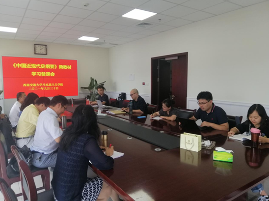 中国近现代史纲要教研室在犀浦校区31225召开《中国近现代史纲要》新教材学习备课会,教研室全体成员参加了会议。