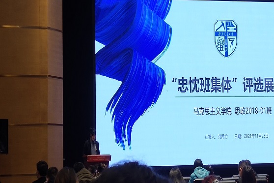 评选展示会上,思政2018-01班团支书龚禹竹从“越是尽责后,越是开心颜——班级事务管理”、“在马信马,在马行马——思想政治建设”、“青春须早为,岂能长少年——班风学风建设”、“聚是一团火,散是满天星——未来展望和期许”四个方面向全校师生展示了班级的风采。