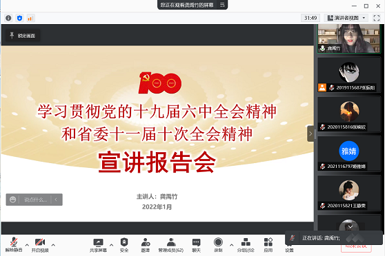 通过本次宣讲报告会,同学们对党的十九届六中全会精神和省委十一届十次全会精神有了进一步了解,也更充分地认识到学习贯彻全会精神的重大现实意义和深远历史意义,为贯彻落实全会精神凝聚了信心与力量。