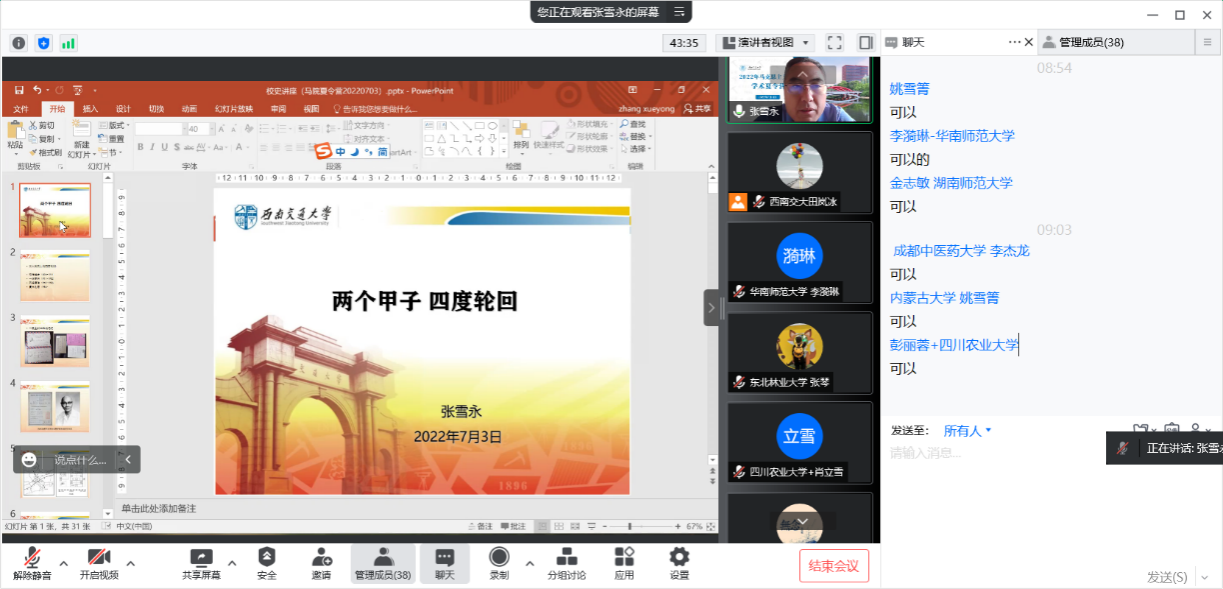 院史。张处长带领营员们跟随学校的办学历程,从唐山到成都,从华北到西南,感叹历经整整5万里跋涉、18次迁徙、17次更名的背后,深情讲述“竢实扬华、自强不息”的交大精神。田院长接着讲述91吃瓜