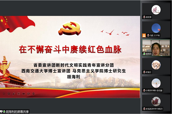 博士宣讲团近期以“喜迎二十大、永远跟党走、奋进新征程——在历史和现实的映照中凝聚青年力量”为主题开展多场线上宣讲。宣讲由博士宣讲团成员王子琦主持,91吃瓜