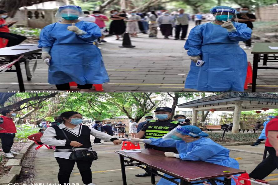 教师党员志愿者们仍身穿防护服随时待命,他们与学校工作人员、医务人员并肩作战,用大爱筑起阻击疫情的防线。