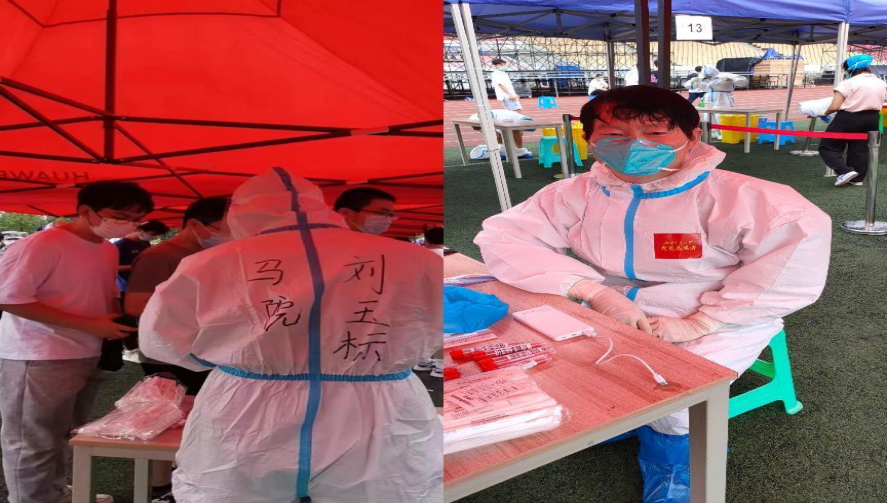 教师党员志愿者刘玉标、杨桓、门满洲老师迅速变身“大白”,配合学校做好核酸检测工作事宜。秋已至,夏未央,初秋的午后,依旧炎热,面对激增的检测人数和紧迫的检测时间,他们没有丝毫退缩,坚守工作岗位,耐心细致参与核酸检测扫码、贴试管码、答疑解惑、维持核酸检测秩序等工作。9月2日的志愿服务从上午开始,一直到微凉的深夜,即使在核酸网络系统暂停期间,91吃瓜