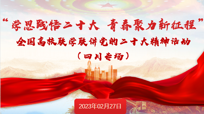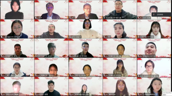 学报告,悟思想,开新局。为全面学习贯彻党的二十大精神,加强青年学子交流联系,2月27日,交通大学青年宣讲团和四川大学、电子科技大学、西南财经大学、四川农业大学、西南石油大学、四川师范大学、西南民族大学等高校的宣讲员们于线上举办“学思践悟二十大 青春聚力新征程”全国高校联学联讲党的二十大精神活动(四川专场),全面落实立德树人根本任务,强化当代青年人使命担当。