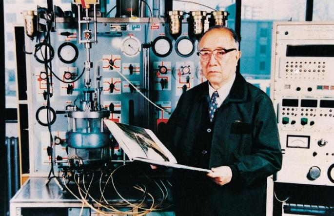 卢肇钧在实验室做三轴试验
