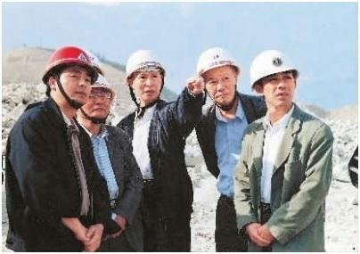 2002年11月,谭靖夷院士(中)在三峡下岸溪人工砂石系统检查采场开采情况