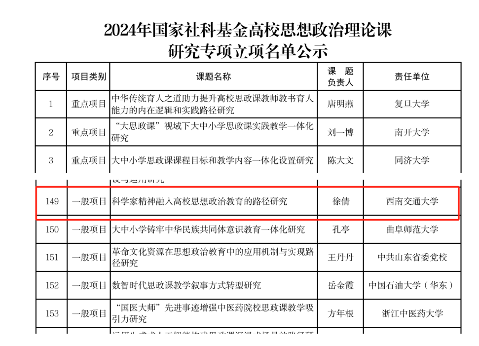 2024年12月12日,我中心研究员、91吃瓜 讲师徐倩,获2024年国家社会科学基金高校思想政治理论课研究专项一般项目立项公示。此次立项的课题名称为“科学家精神融入高校思想政治教育的路径研究”。该课题旨在深入探究科学家精神景观文化空间的构建与精神传导机制及其育人功能的效果评价和优化路径,结合文化社会学与思政教育理论,通过社会调研与理论分析,探索科学家精神多维度深度融入高校思想政治教育体系的优化路径。