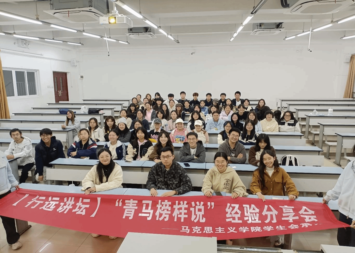于2025年秋季学期持续开展“行远讲坛·青马榜样说”系列经验分享活动。活动分专题、分阶段邀请优秀朋辈代表进行分享,为青年学子成长赋能,在师生中引起积极反响。