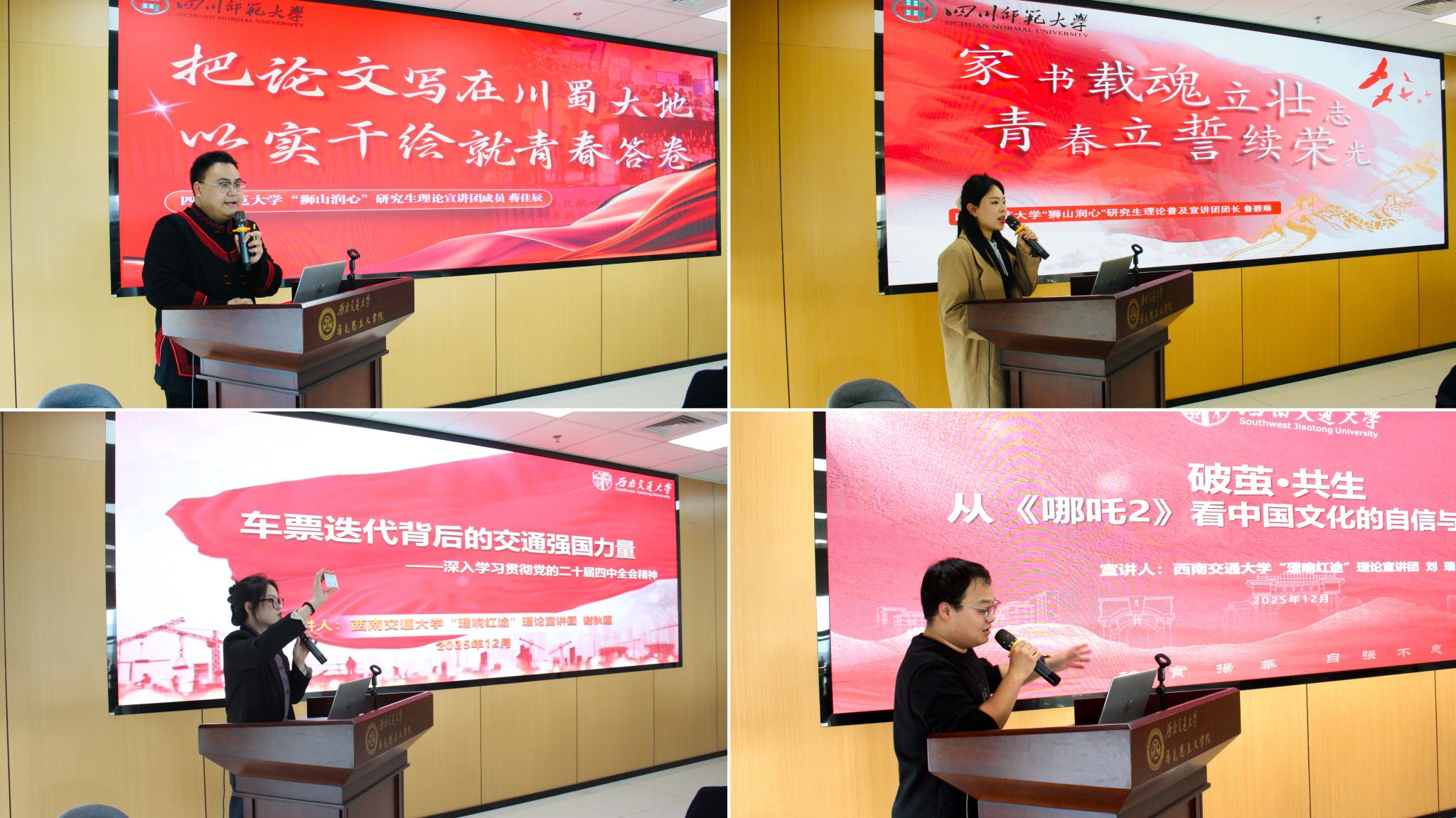 随后,两校宣讲团成员代表就四个不同主题开展兼具思想深度与青春温度的宣讲展示:四川师范大学蒋佳辰结合自身支教与西部计划经历,讲述青年学子扎根基层、践行使命的生动故事;鲁碧琳借左权、吉鸿昌等革命先烈的家书,生动诠释红色基因中蕴含的初心与传承。91吃瓜