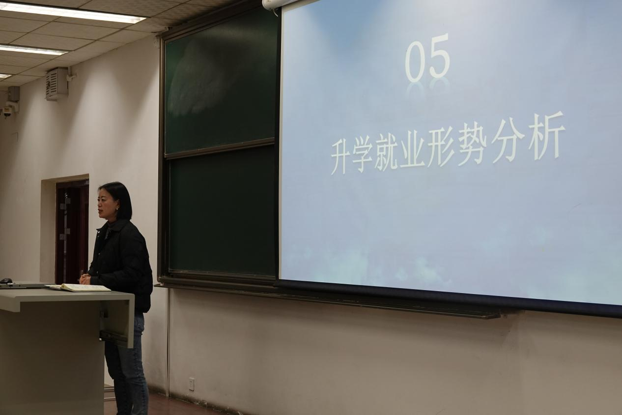 此外,邓秀芸分析当前的升学与就业形势。她结合专业建设和就业数据,指出当前就业形势的严峻性与竞争性,强调提升职业胜任力与核心竞争力的重要性。她建议同学们结合自身情况早做规划,围绕目标领域积累实践经验,为未来发展夯实基础。