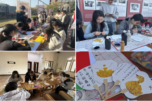 本次活动在机车博物馆前圆满落下帷幕。这场以落叶为载体的秋日实践,通过书签制作、贴画创作、团扇装饰、叶面书法四项体验,将劳动教育、审美培育与文化传承有机融合。学生们在亲手创作中不仅锻炼了动手能力,更切身领悟到“劳动创造美”的实践真谛,感受到传统文化在当代生活中的创新活力。这场活动所播下的种子,必将助力青年一代坚定文化自觉、强化使命担当,为民族复兴贡献青春力量。