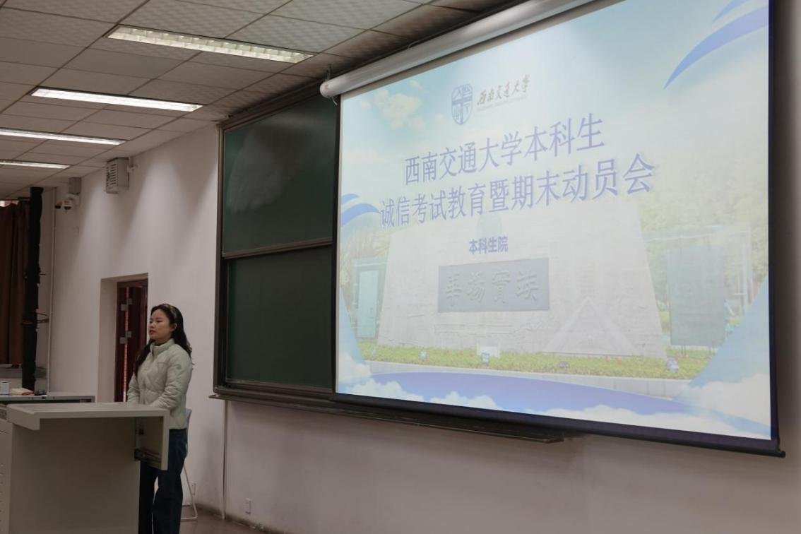 本科考试考场管理办法》等考场规则与校规校纪,通过典型案例进行警示教育,并向全体同学发起了诚信考试倡议,号召大家严于律己,共同维护考试的公平公正。