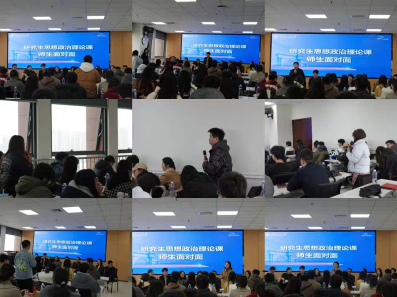 活动在轻松而热烈的氛围中拉开帷幕。主持人介绍,本次“研究生思政课师生面对面”活动已是第三期举办,该活动始终致力于构筑一个平等、开放、真诚的对话平台,倾听同学们的真实心声,汇聚师生的共同智慧,为研究生思政课的守正创新持续注入生机与活力。师生们围绕以下热点话题展开了热烈讨论。